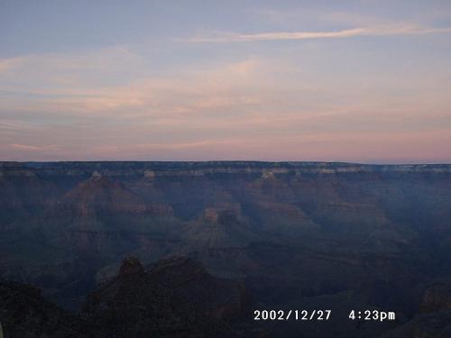 Las Vegas and the Grand Canyon, U.S.A.ラスベガス&グランドキャニオン アメリカスタートレックとグランドキャニオンと年越し花火大会に惹かれて、ラスベガス旅行。最初はどうでも良かったカジノも結構面白かった:-p StarTrek:TheExperienceの写真はここにまとめてある。 飛行機はいつものシンガポール航空だが、成田−ラスベガスの直行便はない。 LAXで乗り換えるのだが、今回はアメリカ国内で評判が良いサウスウェストを 利用してみた。ノースウェストではない。サウスウェスト。国内線専用である。 『破天荒!―サウスウエスト航空 驚愕の経営』なる本が出版されているのだが、 そのレビューをAmazon.co.jpから以下に引用する。詳細は下記リンクを辿られたい。 > 座席指定がない、ファーストクラスがない、機内食がない、航空券がない、 > とないないづくしながら、格安運賃と最高の顧客サービスを実現している > サウスウエスト航空。本書は、1971年にわずか3機のボーイング737機で > スタートした同社が、アメリカの航空業界に革命をもたらし、急成長を > 遂げた秘密を詳しく紹介している。 > ・・・中略・・・ > 適切な対応ができるように利益分配制度を採用することで、従業員ひとり > ひとりが経営者の立場で行動している。また、従業員とその家族を会社 > という大家族の一員とすることで、人間関係を強固にしている、といった > それまでのアメリカ企業の常識を破るような「破天荒な基本戦略」で > ビジネスの基本を変えたことにある。そして何よりも、創業者の一人で > あるハーブ・ケレハーという常識にとらわれない優れたリーダーの存在が > 不可欠だったのである。 とても面白そうである。国内線専用とはいえ、日本からもインターネット経由で 予約ができる。サイトはここである。チケット代わりのWebページプ リントアウトを もってロサンジェルス空港のカウンターに行く。国際線ターミナルから一番離 れた ところにある。さすがローカル。しかも、乗客もみんなローカル。国際線から 乗り 継ぐ人は一人もいなかった。 座席指定もないので、乗ってくださーいといわれると ぞろぞろと機内に入り、適当に座る。まるでバスや電車である。 機内サービスはないと聞いていたが、チノパンにポロシャツ姿の 女性乗務員が、 飲み物の注文をとりにきた。コーヒーを頼むと、手に持っていた紙切れに注文を 書いて、適度に注文がまとまると紙コップに入れたコーヒーを持ってきてくれた。 なんだか良いぞ、このローカルな感じ。今度から国内移動はサウスウェストを 利用しよう。料金も安いし。 といいつつも、最近 フーターズエアー もちょっと気になっている:-p #と言ってたら無くなってしまった… 宿泊ホテルは便利そうだったモンテカルロ。確かに便利極まりない。 目の前にコンビニ(スーパー)があるのがとても便利。部屋も広いし、 カジノや飲食店も充実。後日泊まったバリーズと共に、おすすめである。 グランドキャニオンにはラスベガス大全のツ アー(シーニック航空)で。 とりあえず、見 ておくべき地球の景色の一つである。 当然、ヒルトンにも出かけ、スタートレックを満喫。クワークのバーは とても居心地が良い。トイレにいたEMHドクターにはちょっとびっくり。 トイレ入り口の男女マー クもこっている。さすが。 年越しイベントは、大勢が大通りに繰り出して大騒ぎである。当然車両通行止め。 ホテルの屋上から花火が上がり、ビールを飲んで盛り上がる人々。 除夜の鐘とは対照的な、こんな年越しもまた良いものだ。 ところでラスベガスには必勝法がある。多分、ある。簡単だ。勝ったらやめればいい。 単調に負け続けるゲームなど誰もやらないから、ほとんどの場合どこかで勝てる。 例えばスロットなら一度くらいは大きなあたりが出る。といっても10万円程度ではあるが。 そうしたら、やめる。それだけのことだが多くの場合、できない。だからカジノは儲かる。 単に経験に基づく推論にすぎないが、多くの人が同意見であったので、真実だろう。 帰国便は朝早い便だったので、早朝にホテルを出る。しかし、タクシーがいない。 これは誤算であった。ホテルのタクシー乗り場に行列ができていて、時間を気に する旅行者も多い。おそらくフライトの時間だろう。周りの人たちと話しながら 待っていると、極めて怪しい黒いワンボックスリムジン車がやってきた。真っ黒な 車体にグラマーなお姉さんの絵、窓もフィルムで真っ黒であ る。ドライバーもまた黒い。 空港まで一人10ドルでどうだとその辺の待ち人と商談をはじめる。おそらく風俗 産業の車だろうが、心配はなさそうだ。お兄ちゃんのお小遣い稼ぎだろう。乗った。 料金は後払いであるところに何となく好感が持てる。空港に着くと荷物を手渡され、 料金を払う。ドライバーのお兄さん、ご機嫌である。 ラスベガス空港からLAXまでは例によってサウスウェスト。その後成田までは シンガポール航空。 それにしてもあの黒い
