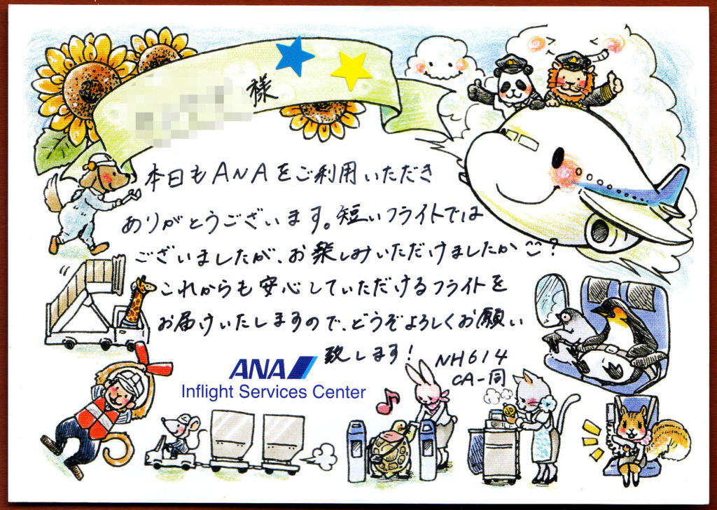 1日目は宮崎アウトアンドリターン。日帰り宮崎ブーゲンビリア空港だ。計画通り東京MKに迎えに来てもらい、黒塗りのメルセデスで羽田へ。まだプラチナでもSFCでもないがプレミアムクラスなのでプレミアムチェックインからイ~ン。ANAラウンジで一息ついてプレミアムクラスにイ~ン。なんだか言葉がプレミアム三昧。機内では久しぶりの飛行機だというとCAさんが適当に相手をしてくれて、絵ハガキとかもらった :-p