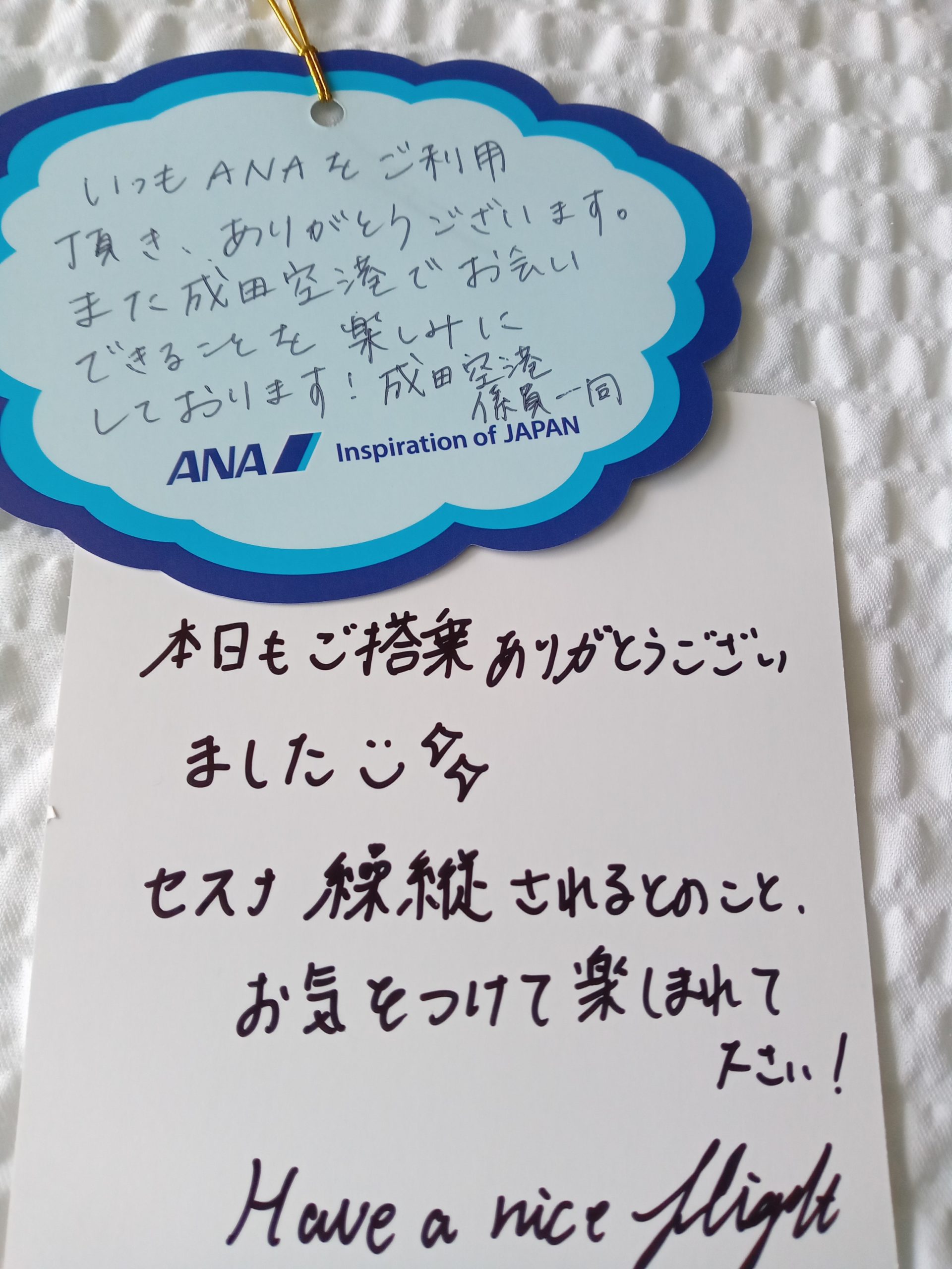 そうそう、今回はじめて空港のANAスタッフさんからもお手紙を戴きました。