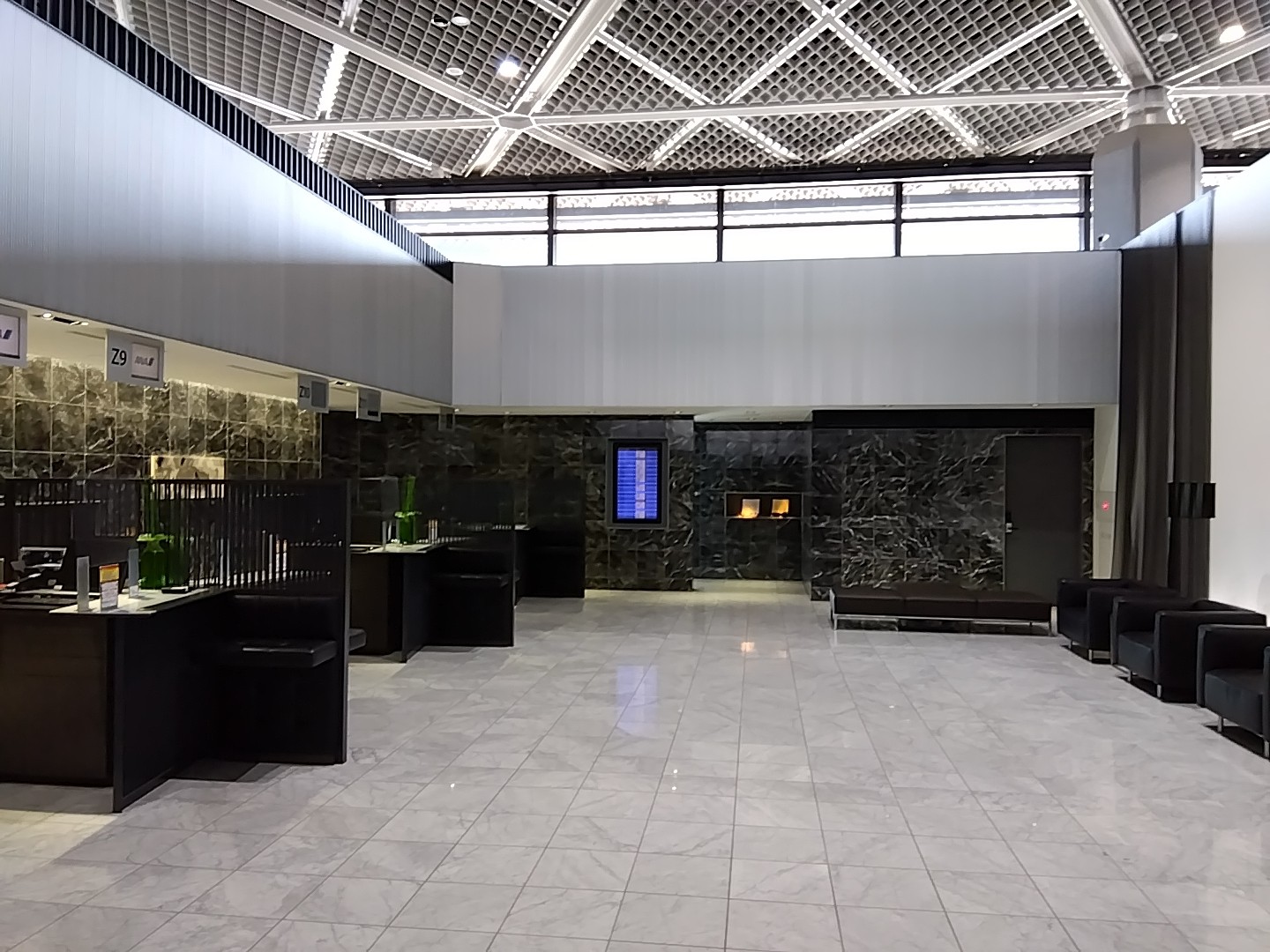 さて、出発。今回は成田空港の利用だ。∵フライングホヌは成田からしか飛んでいない。羽田のパッセンジャーボーディングブリッジPBBが2階建てのホヌに対応していないので。なんだか久々に成田エクスプレスN'EXに乗り込んで、成田へ向かい、念願のZカウンターに到着。昨年はここに入るため辛く厳しい修行を重ねたと言っても過言ではないのだ(#著しい過言)。なのでめちゃ大げさな動画を作ってみた :-p こんな感じで沢山の綺麗なお姉様方がお出迎え~。でも一番沢山なのはこの後のセキュリティゲート。右写真の奥すぐが保安検査場なのだけど、ここに係員が沢山すぎてビックリ。ダイヤモンドメンバーとファーストクラス利用者はそんなに怪しいのだろうか 🙂