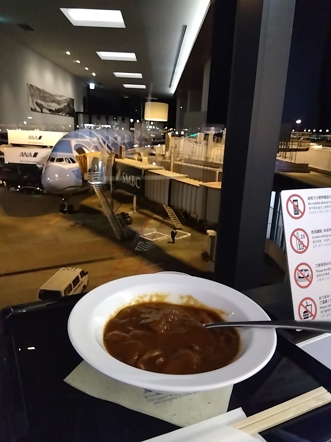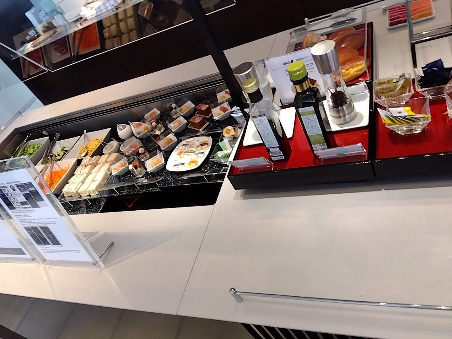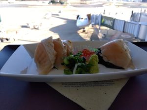 そして最後はもちろんANAラウンジと、ANAスイートラウンジ。スイートラウンジに入れるのは Zカウンターと同様にファーストクラス利用者かダイヤモンドメンバー、もしくはMillion Milerのみ。なのでANA Lounge の方はささっと見に行って、基本はANA Suite Lounge で過ごす。コールドミールやスイーツが並べられているけど、温かい食事もオーダーできる。メニューも多くあり、例えば丼物のご飯を抜いてもらったりもできるので、炭水化物を避けている僕でも美味しく沢山食べられるラウンジであった。当然お味も¡delicioso!  アルコール類も豊富なようだけど、ぜひノンアルコールビールを置いて欲しい。。。