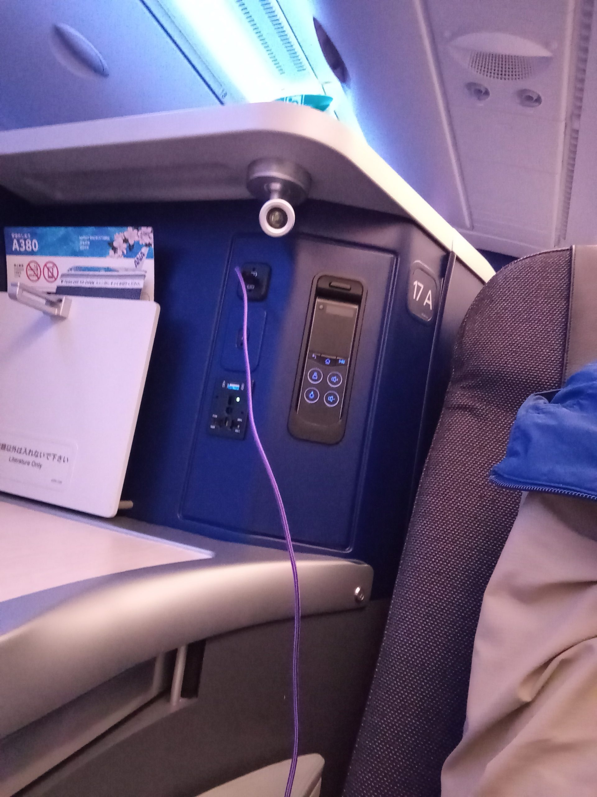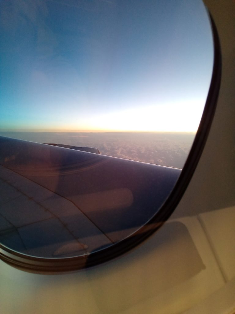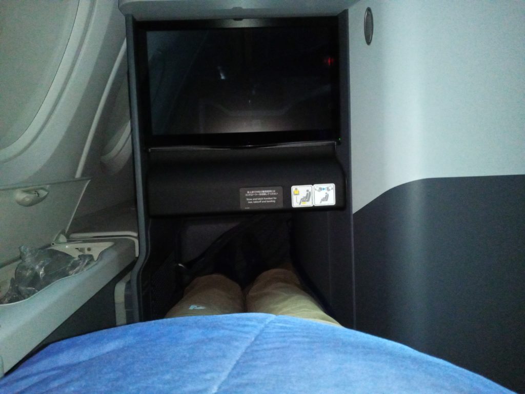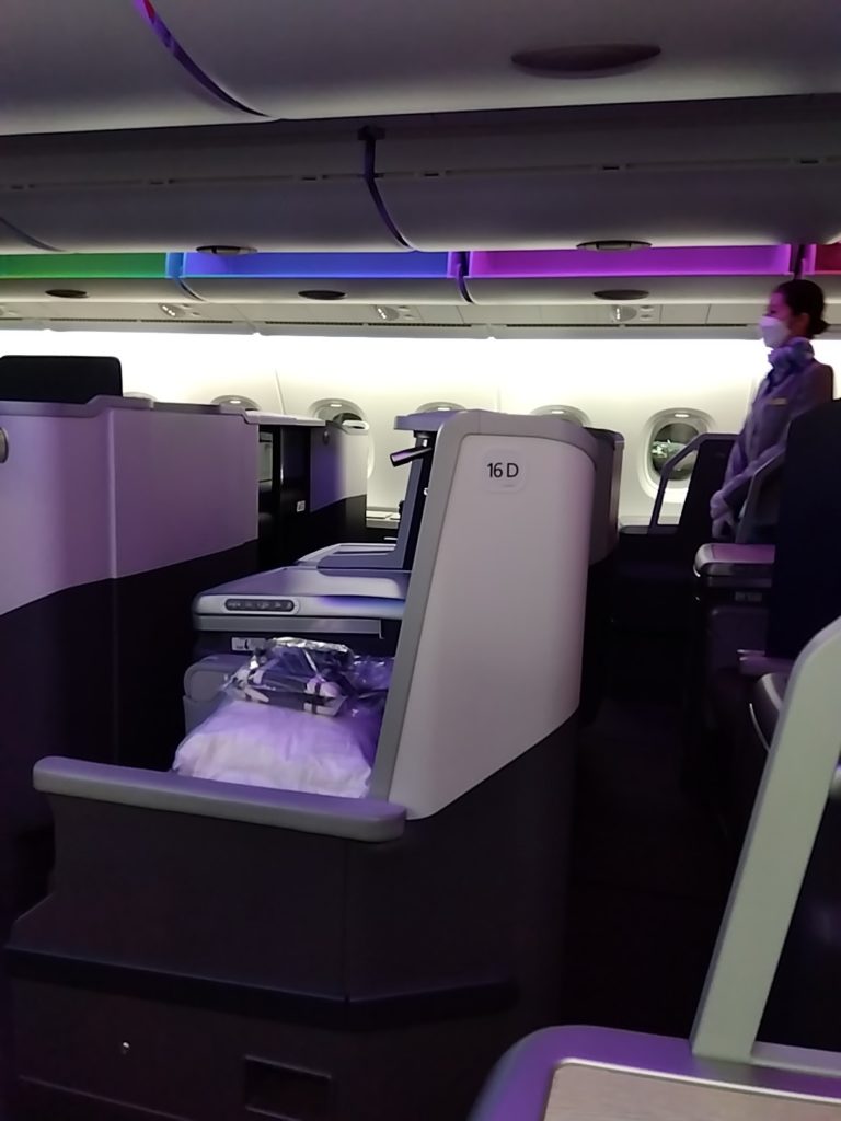 ビジネスクラスのエリアは他と仕切られていて、階段を使うことも無いのであまり広さを感じないけれど、大きな亀さんはさすがのどっしり安定フライト。換言すると、ゆっくりしっかり離陸する、重量感あふれるフライトだった。