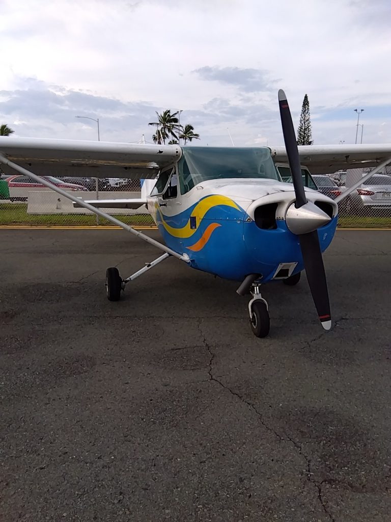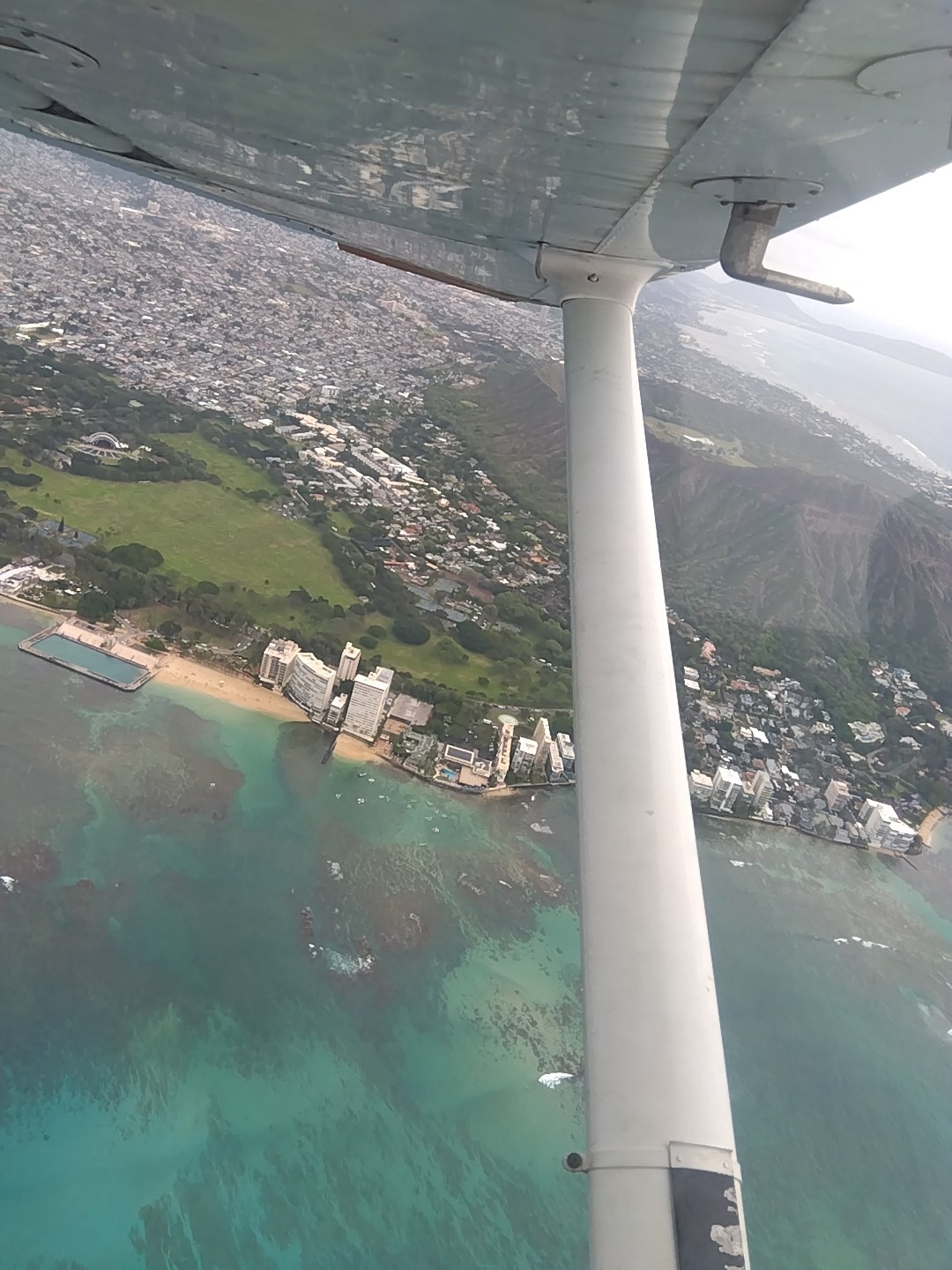 今回のメインイベントはこれ、小型飛行機操縦体験。いくつかの候補があったのだが、例えばヘリコプターは滞在予定日に設定がなかったり(これは今度また体験に行こう)、双発の機材のみであったり(それはそれでいいのだが)、結局問い合わせへの対応も良かった Lani Lea Sky Tours にお願いすることにした。第一印象というものはやはり重要で、電話でもメールでも「お、いいな」とか「なんか違う」とか感じたりするものだ。メール問い合わせから印象が良かったのだが、これは完全にアタリだった。到着後、天候の件で電話(Line)打ち合わせを行ったが臨機応変に対応してくれたし、送迎ポイントやフライトコース等々、しっかり相談にのってくれた。