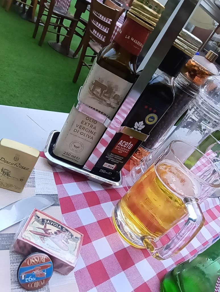 さて、このお店は名前通りのトラットリアで、色々ユルユルでかなり好きな雰囲気。奥に中庭があり、結構広い。ちょうど日が暮れかかるころ、この中庭で初日の夕食を頂きました。