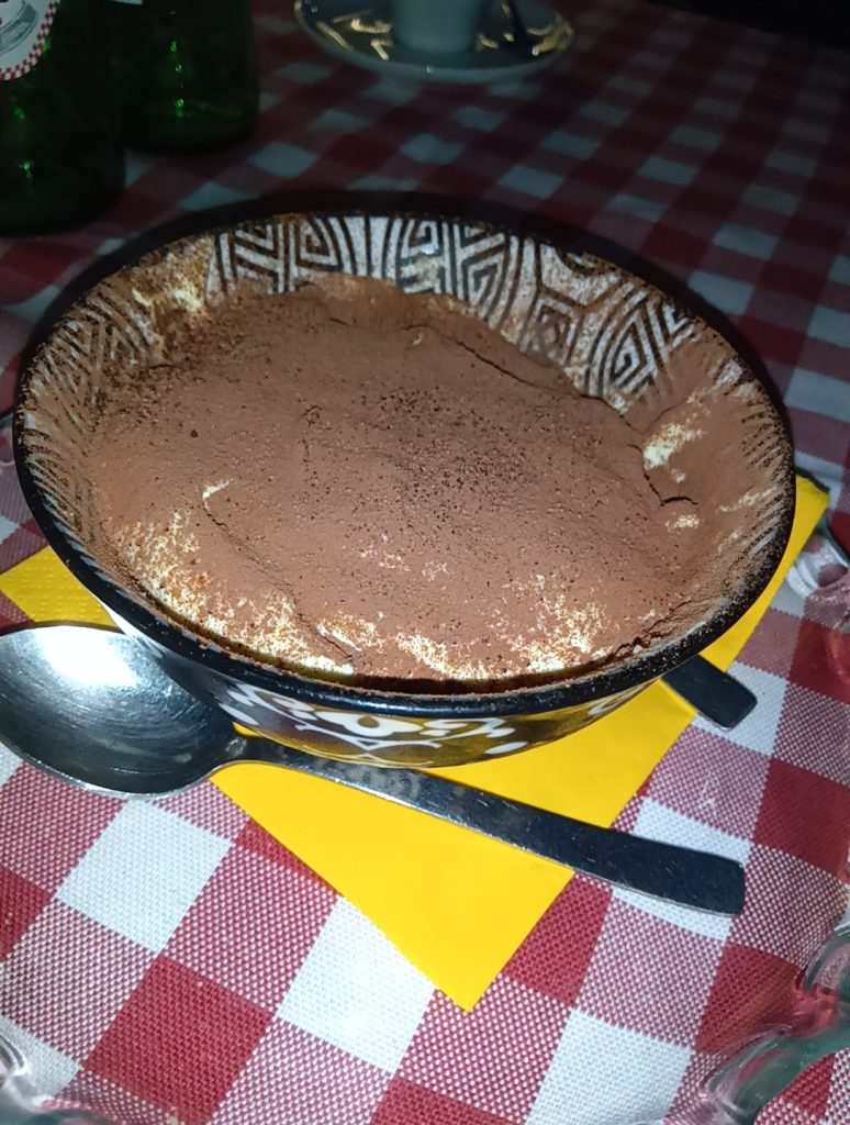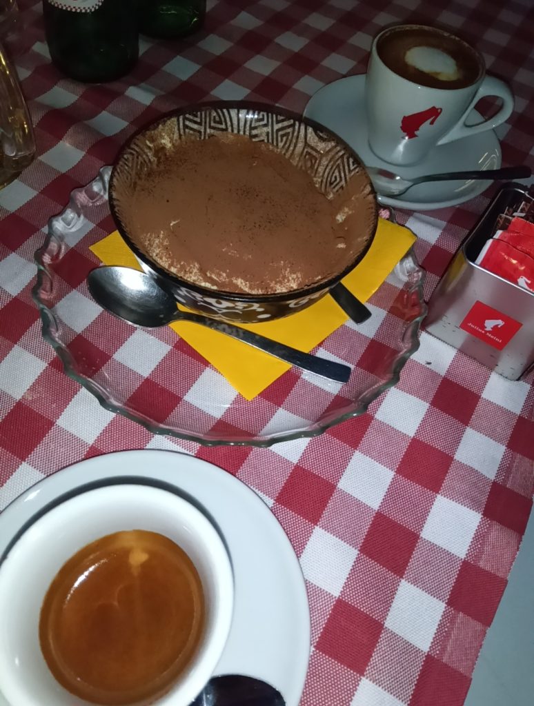 食後はやはりエスプレッソ e マキアートとティラミスですね。イタリア発音だと最後のスがオダギリジョーの「じゃイイですぅ~」みたいになります。謎な例えですが要するに最後にアクセントがあります。イタリア語表記は Tiramisù で、最後にアクセント記号がしっかり付いてまスぅ~。